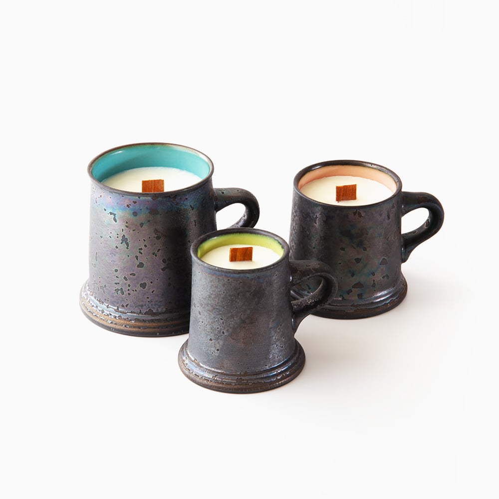 火と香りと器。 それぞれの個性が重なり、日常の中に小さな余白をつくってくれるアロマキャンドルです。 どうぞゆっくりと、お気に入りの時間に寄り添わせてください。